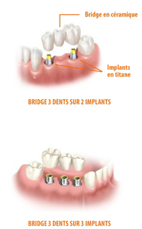 | Appareil complet avec implants | Remplacement d'une dent | Remplacement de plusieurs dents | ||